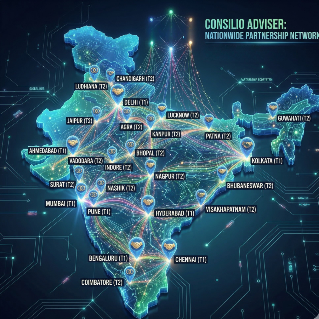 At Consilio Advisors, our strength lies beyond individual expertise. We operate through a collaborative network of professionals across India, enabling us to deliver specialized solutions for diverse business needs.